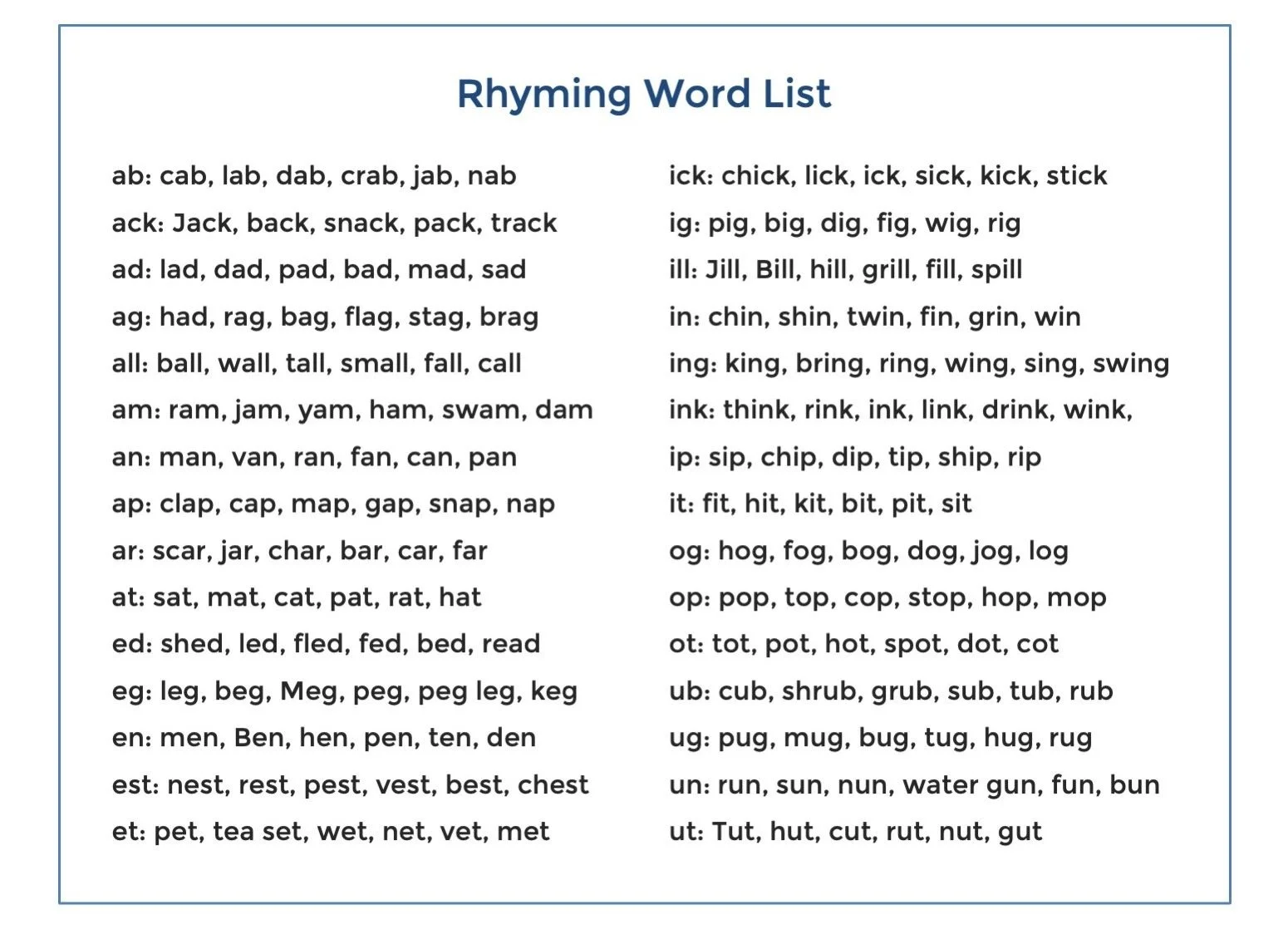 Keep a lookout for these words in activities that involve word families, or a group of words that rhyme.